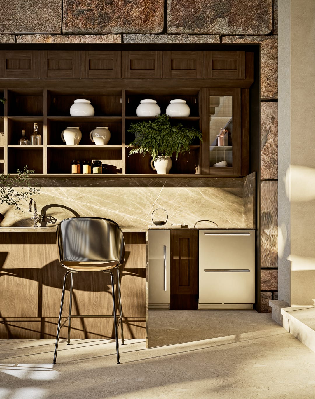 Esa idea se traduce en decisiones concretas. Materiales certificados, selección precisa de acabados, seguimiento posterior a la instalación. Trabajan con superficies FENIX, de acabado mate, resistentes a marcas y con capacidad regenerativa, y con piedras nacionales que reducen traslados y aportan carácter local. No es discurso: es especificación técnica aplicada al diseño interior.
