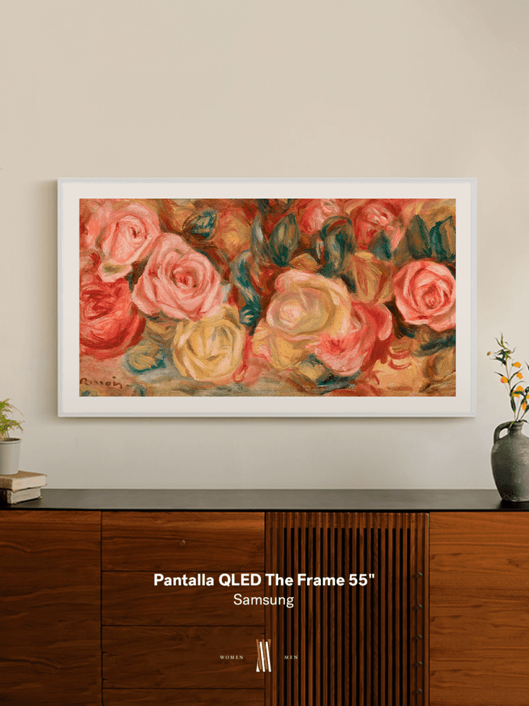 The Frame combina lo mejor de una televisión 4K QLED con la estética de una obra de arte. Cuando está apagado, muestra pinturas o fotos para integrarse con tu decoración; al encenderlo, ofrece imágenes brillantes, colores profundos y funciones inteligentes para streaming, juegos y más. Su diseño modular con marcos intercambiables facilita que encaje en cualquier espacio sin romper el estilo del ambiente.