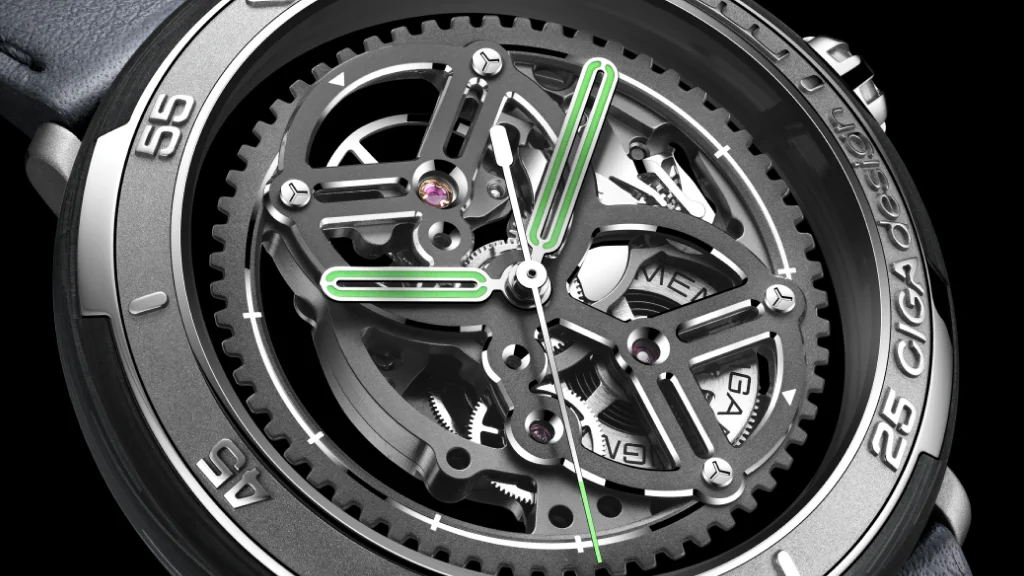 Para este lanzamiento, CIGA design presenta tres variantes de materiales que conservan sus tonos naturales, evitando recubrimientos que se desgasten con el tiempo. Las opciones incluyen el acero inoxidable 316L con acabado mate, el titanio grado 2 y, por primera vez en la historia de la marca, una versión en fibra de carbono forjada.