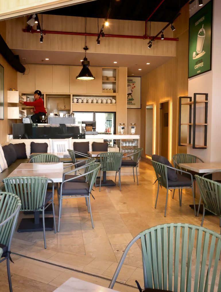 El lugar acompaña sin imponerse. Sillones cómodos. Mesas amplias. Música que apenas se percibe. Gente que lee. Gente que trabaja. Gente que mira por la ventana sin estar apurada por nada. Hay detalles que se quedan: ilustraciones en los muros, tipografías juguetonas, frases pequeñas escondidas en el menú. Todo conversa con todo. Sin ruido.