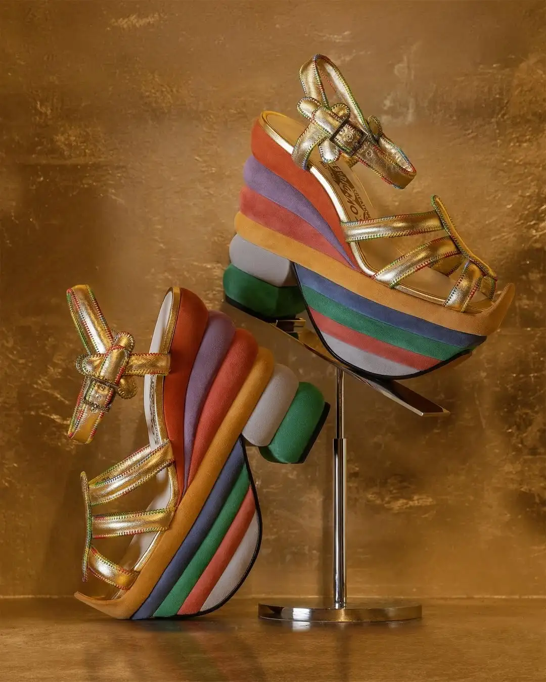 Dentro del espacio se exhiben piezas legendarias tales como la sandalia Rainbow (1938) de Salvatore Ferragamo para Judy Garland, y los tacones rojos de cristal usados por Marilyn Monroe. Estas piezas refuerzan el diálogo entre moda, lujo y cultura pop que distingue al concepto.