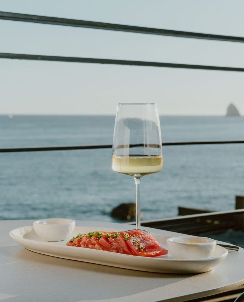 Sunken Bar es, ante todo, un espacio para detenerse. La terraza hundida, que da nombre al bar, permite una sensación de recogimiento sin encierro. Las charlas fluyen con calma, el oleaje acompaña sin interrumpir, y cuando es temporada, las ballenas saludan a la distancia mientras alguien brinda. Aquí no hay prisa. Hay momentos.