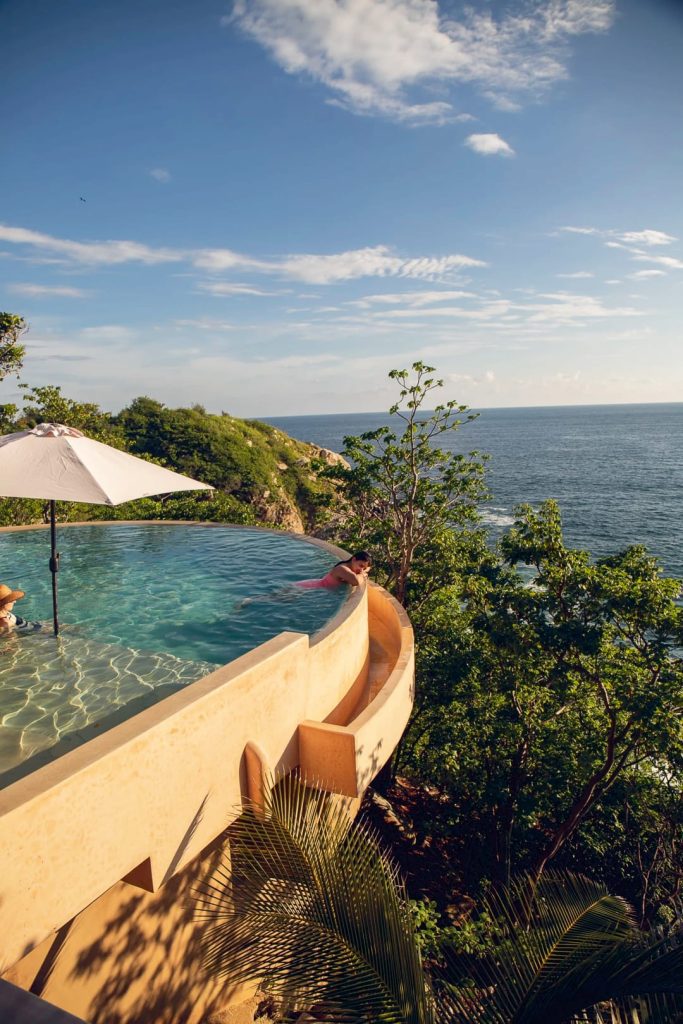 Ubicada en el corazón de Puerto Ángel, esta joya toma su nombre de un concepto que me fascinó: Baori significa manantial en sánscrito, y vaya que hace honor a la palabra, es un flujo constante de paz. Es una construcción que te invita a caminar descalza todo el tiempo, donde el lujo se toca en la calidez de la tierra y se ve en cómo la luz juega con las sombras de las palapas.