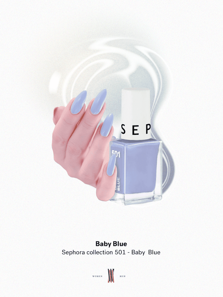 El color de la temporada. No es un azul vibrante, sino un tono pastel casi grisáceo que evoca serenidad. Funciona como un neutro perfecto para combinar con denim o flores. Llévalo en acabado cremoso con dos capas sólidas y mucho top coat para un brillo tipo gel; es el toque de color ideal para quienes no suelen salir del nude.